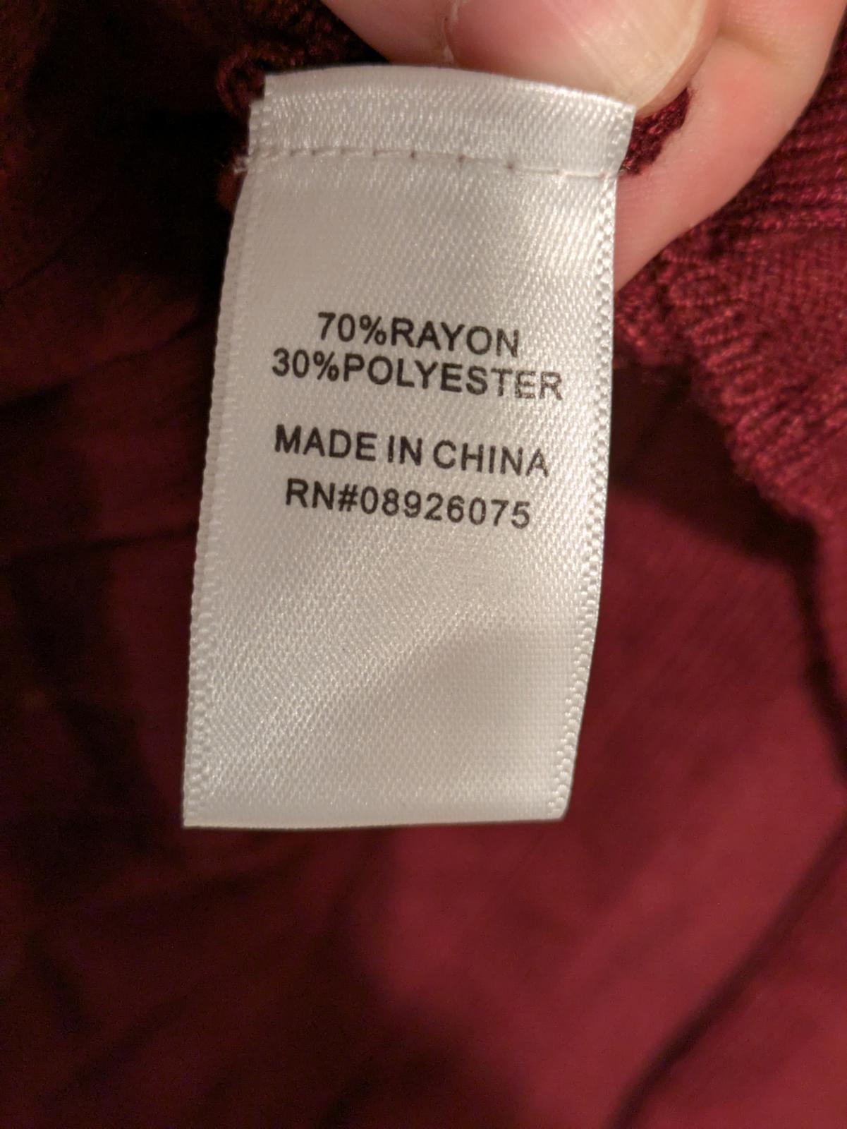 • Materials: 70% Rayon, 30% Polyester