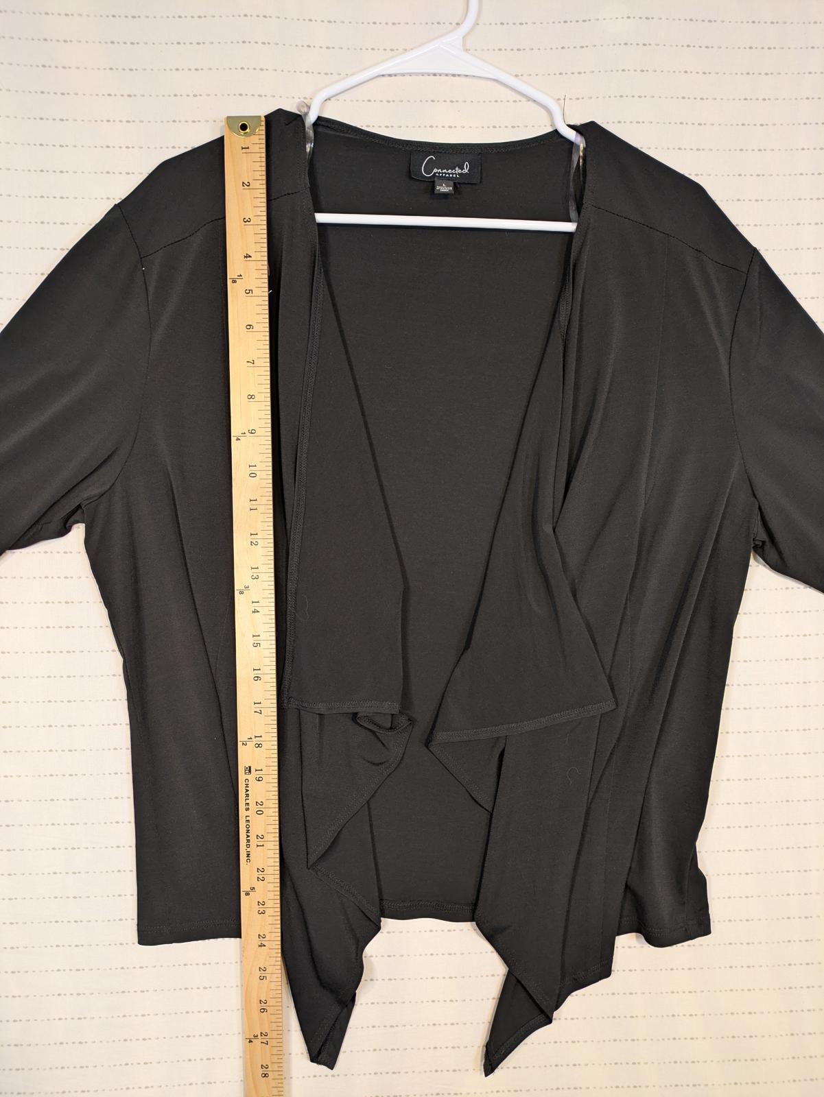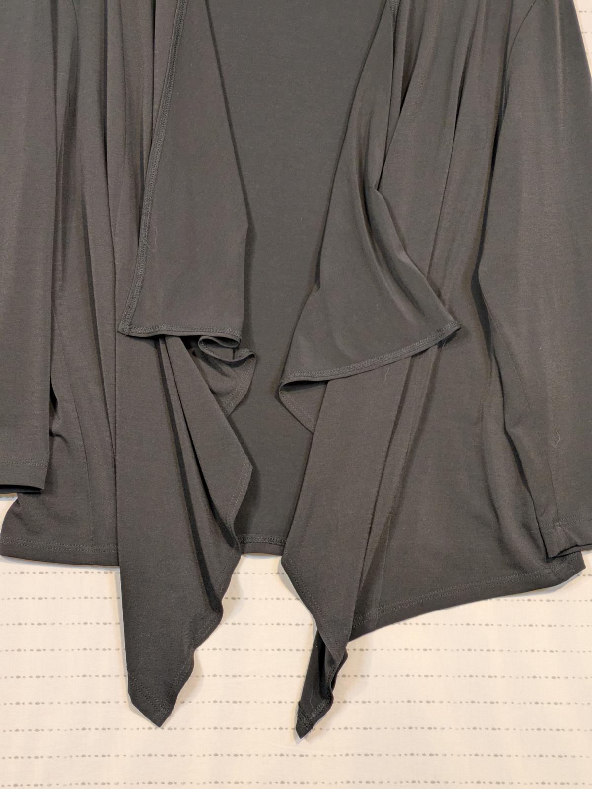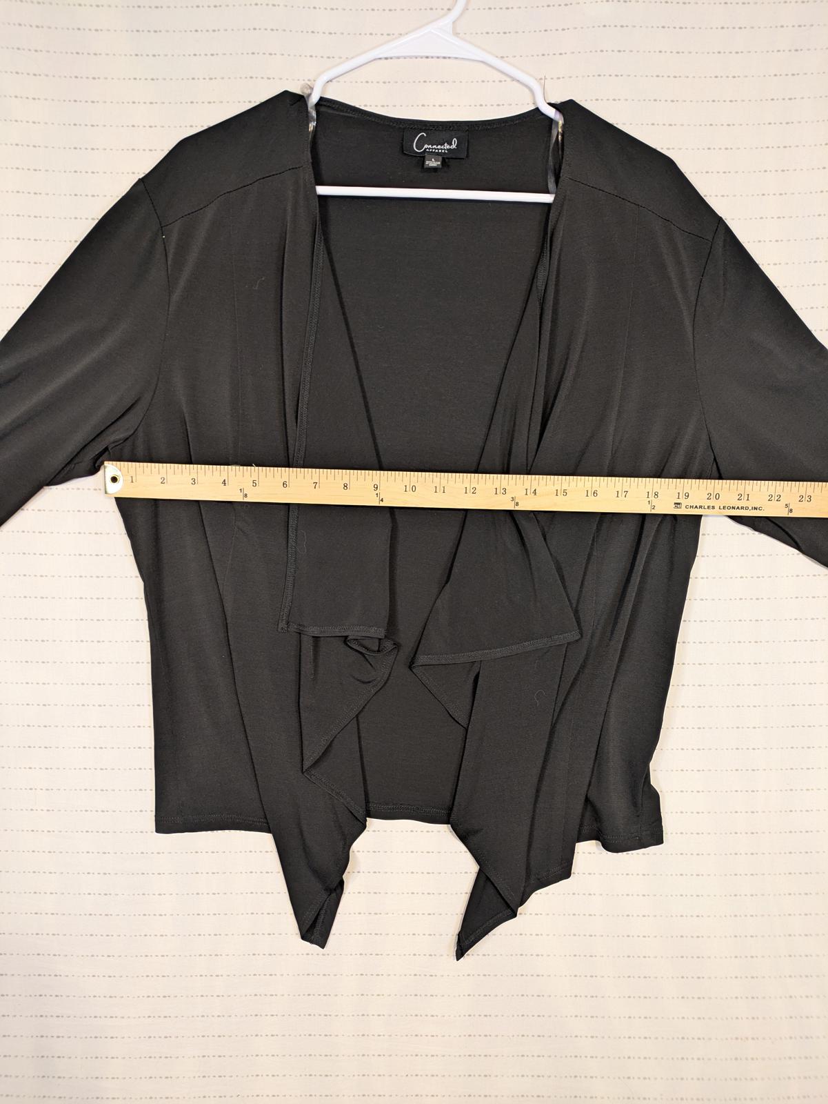 This Connected Apparel open front cardigan features a soft draped waterfall design with an asymmetrical hem and long sleeves. The lightweight knit construction makes it easy to layer over tops or dresses for work, travel, or everyday wear. Designed with a relaxed fit and fluid movement, it offers comfortable coverage while maintaining a clean, versatile look that works across seasons.
