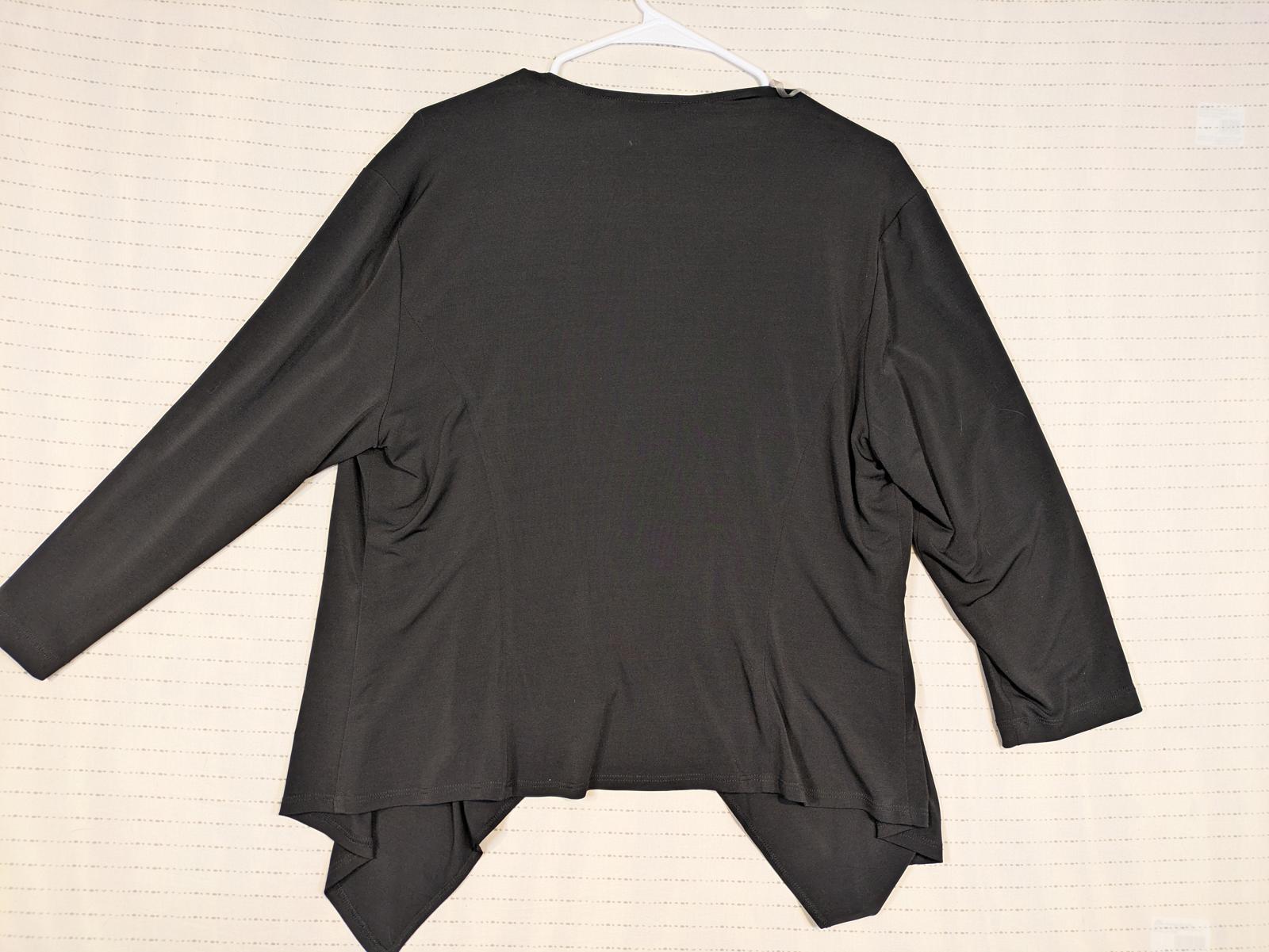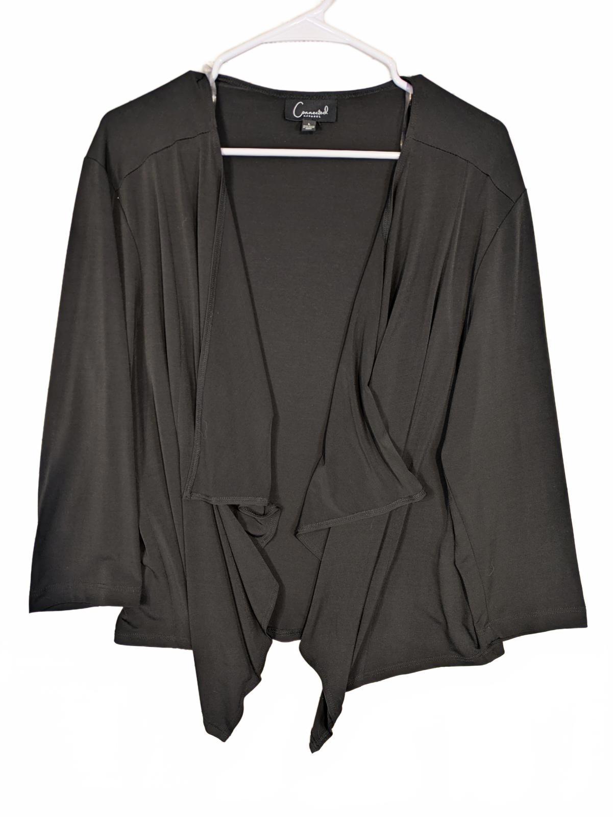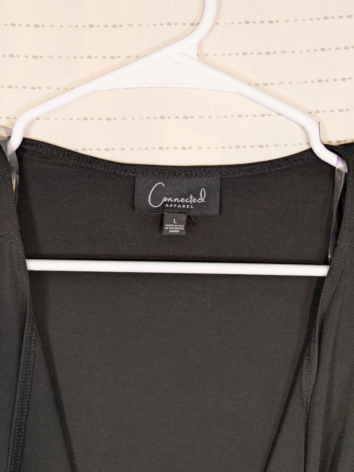 This Connected Apparel open front cardigan features a soft draped waterfall design with an asymmetrical hem and long sleeves. The lightweight knit construction makes it easy to layer over tops or dresses for work, travel, or everyday wear. Designed with a relaxed fit and fluid movement, it offers comfortable coverage while maintaining a clean, versatile look that works across seasons.