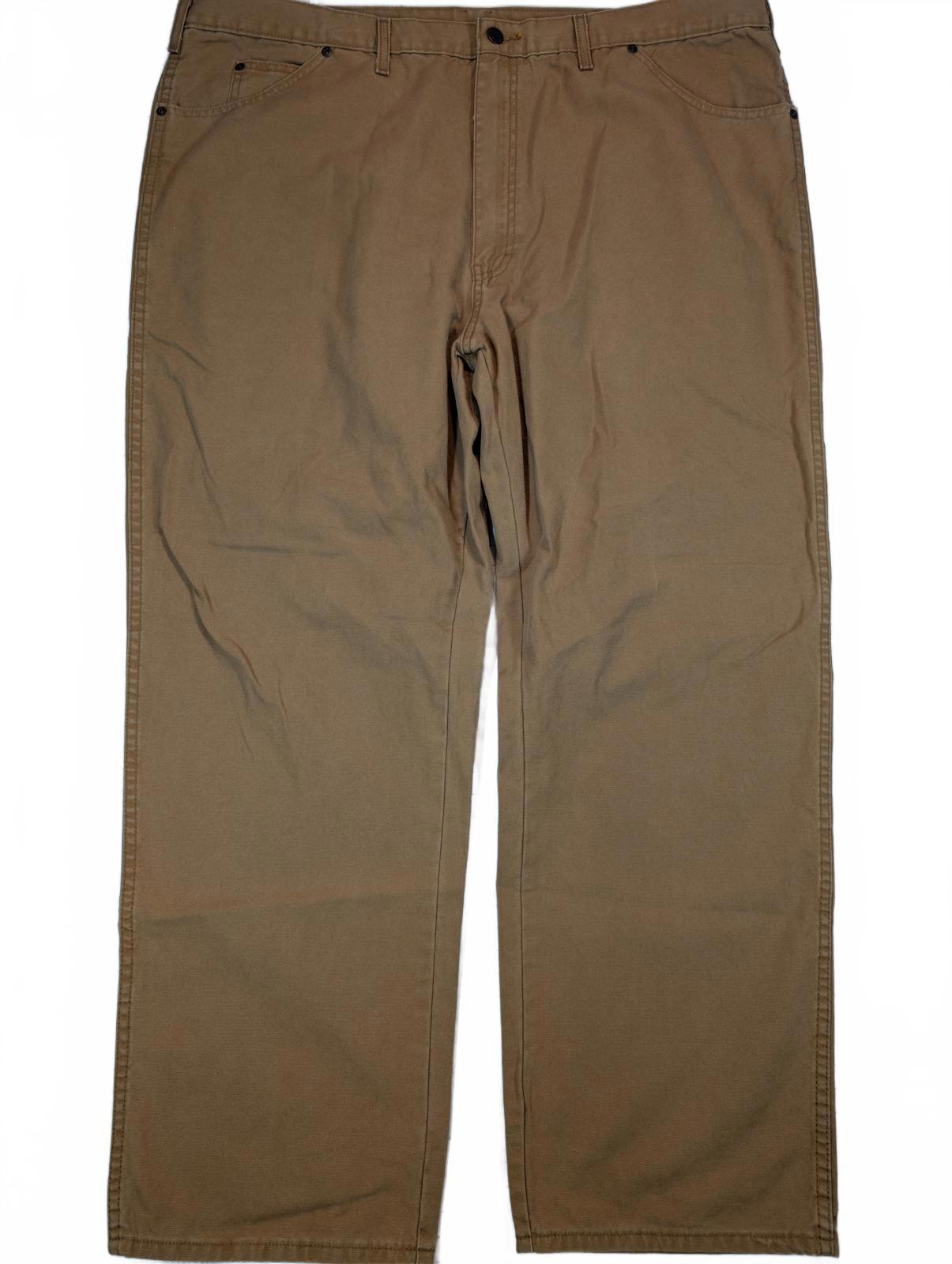 These Dickies Dungaree Jeans are classic heavyweight work pants built for durability and everyday wear. Designed with a traditional five-pocket layout, straight leg fit, and sturdy cotton construction, they’re made to handle work, casual wear, or utility use. The brown colorway offers a rugged, versatile look that pairs easily with work shirts, hoodies, or jackets. Finished with belt loops, button closure, and reinforced stitching throughout. A dependable Dickies staple known for long-lasting performance. Please review all photos for details and measurements.