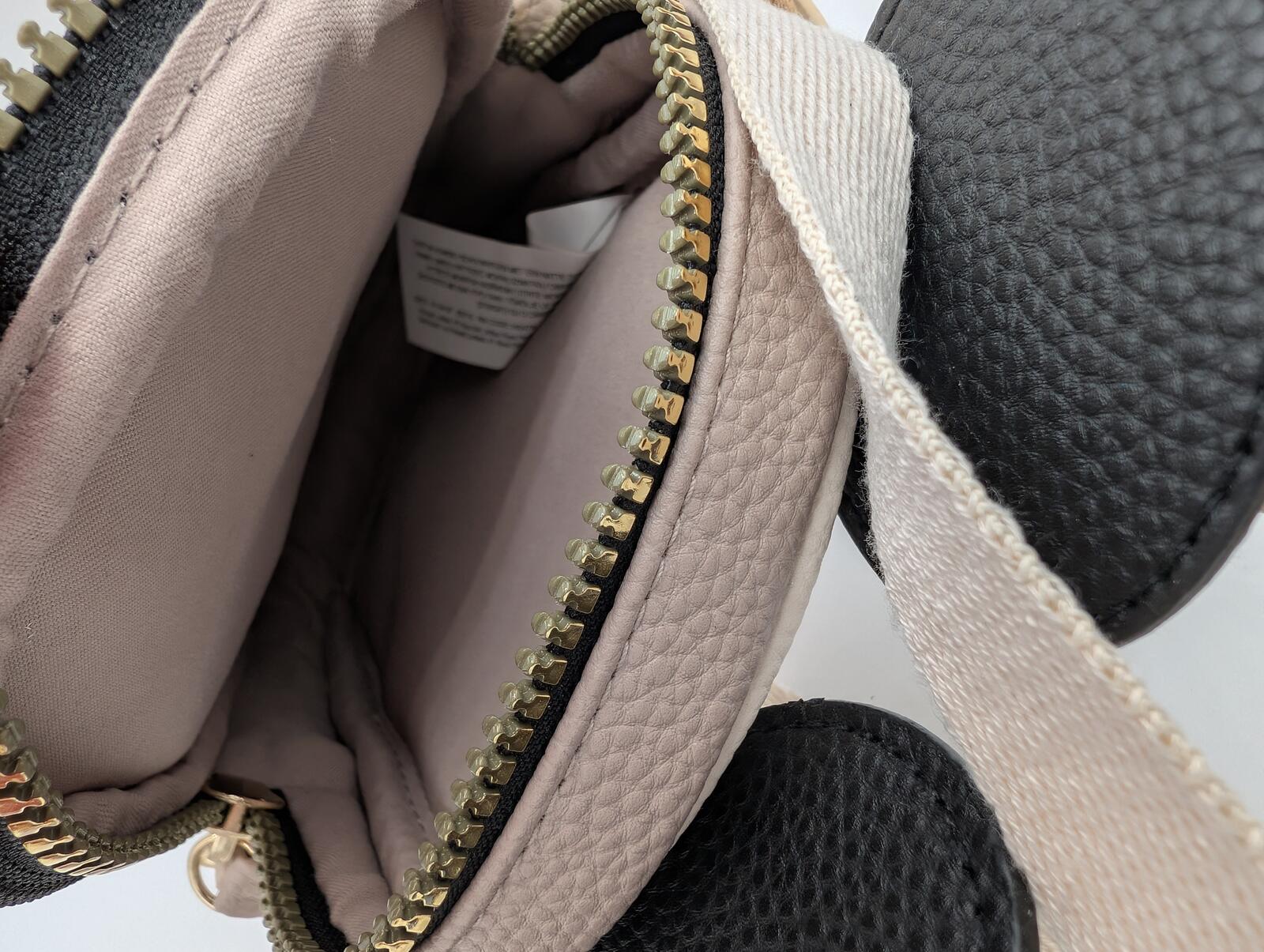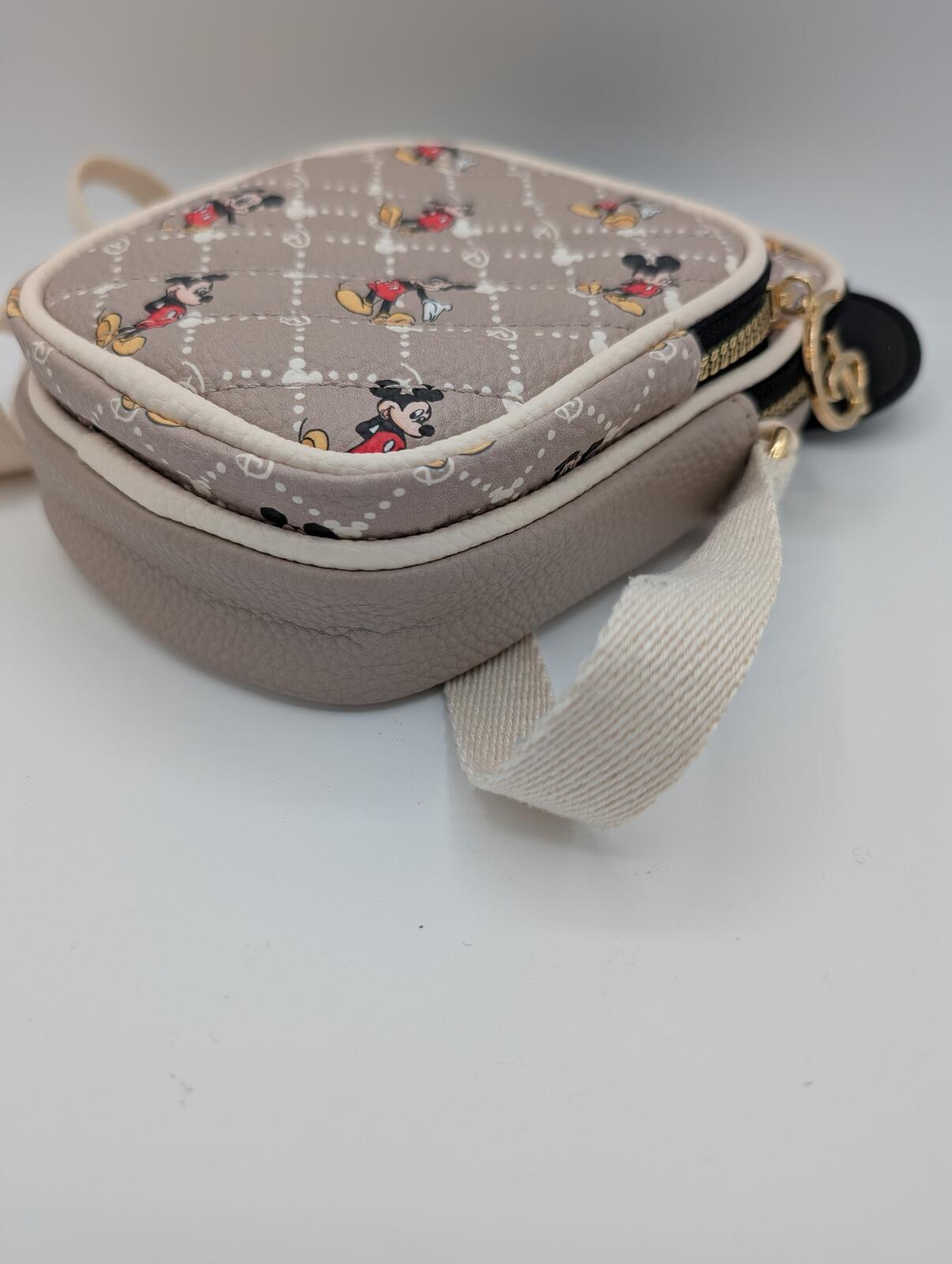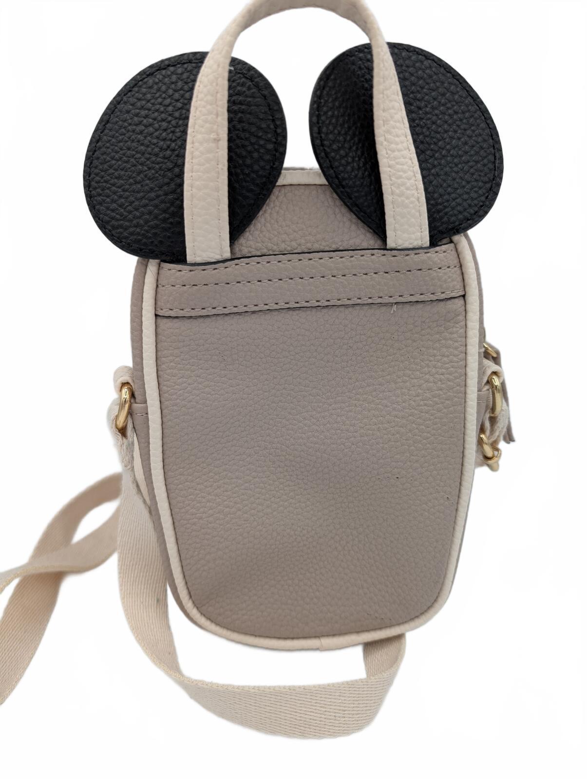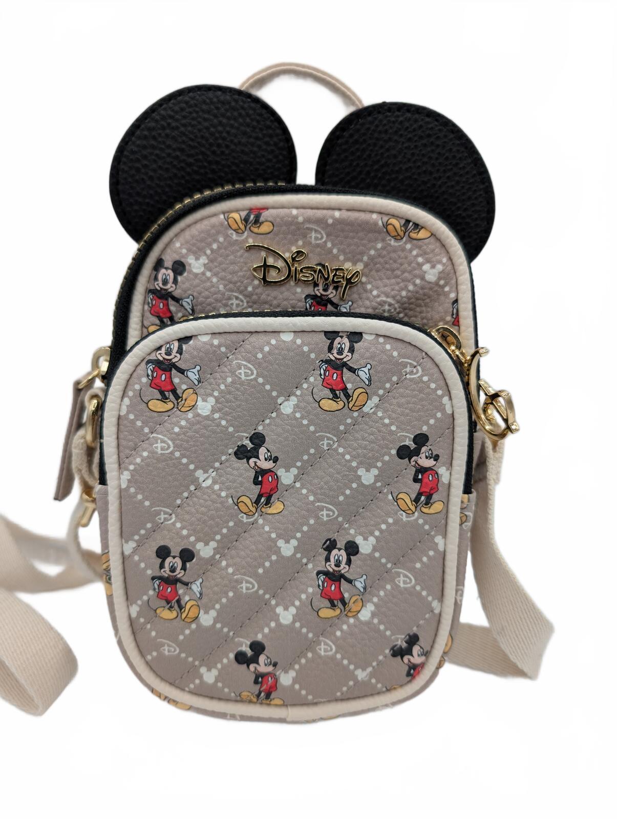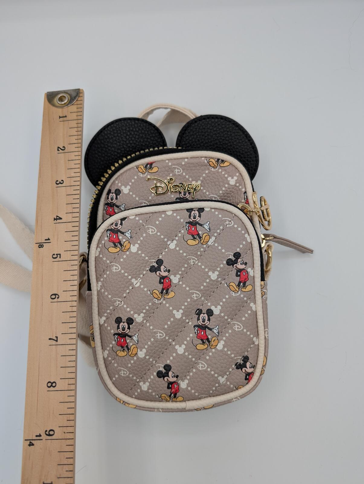 This is a Disney Mickey Mouse ears crossbody phone bag with a quilted mini purse design and front pocket. Light normal wear visible in photos with clean interior.