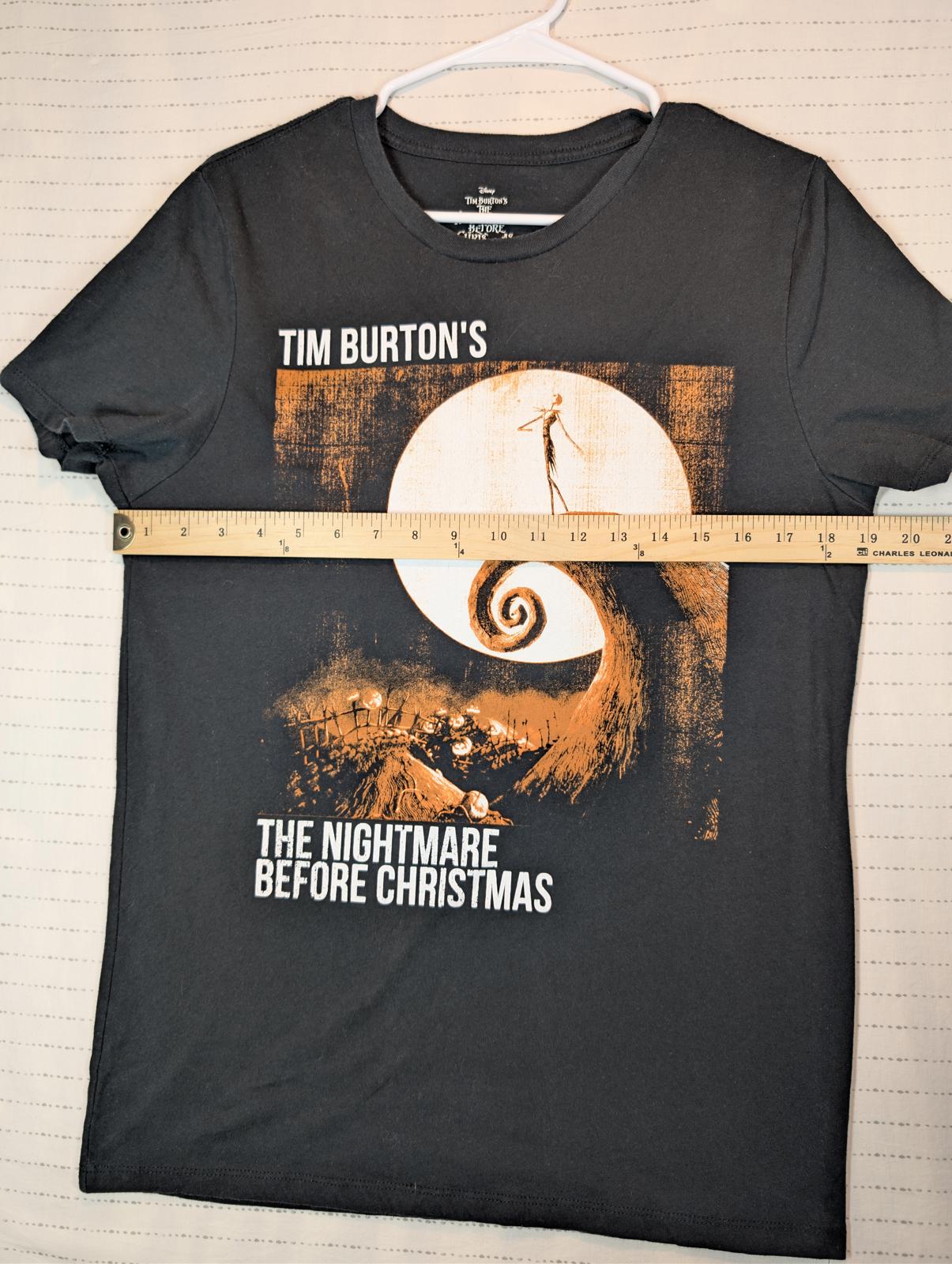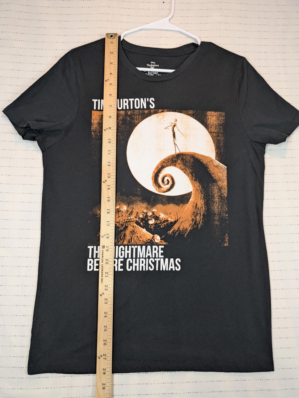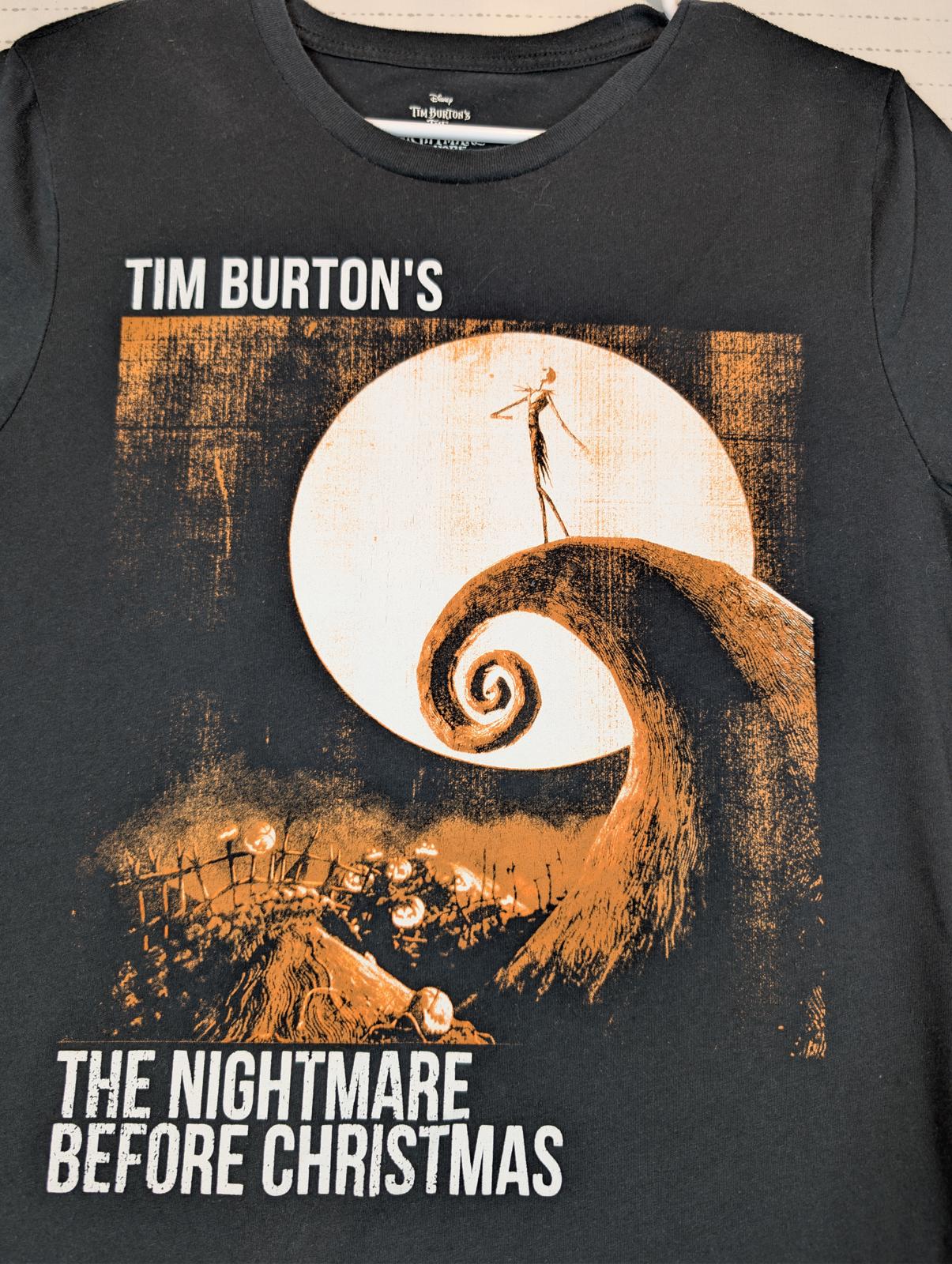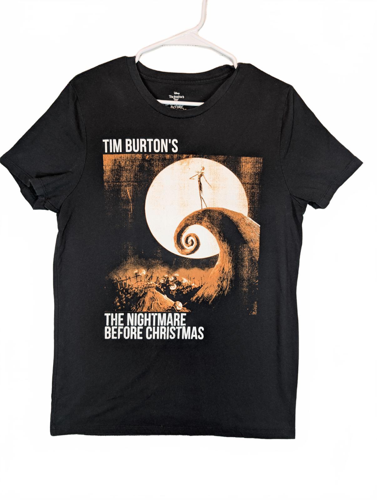 This Disney graphic T-shirt features Tim Burton’s The Nightmare Before Christmas with a bold Jack Skellington moon scene print. Soft knit feel with classic crewneck fit, perfect for Halloween, gothic, or movie fan wear.