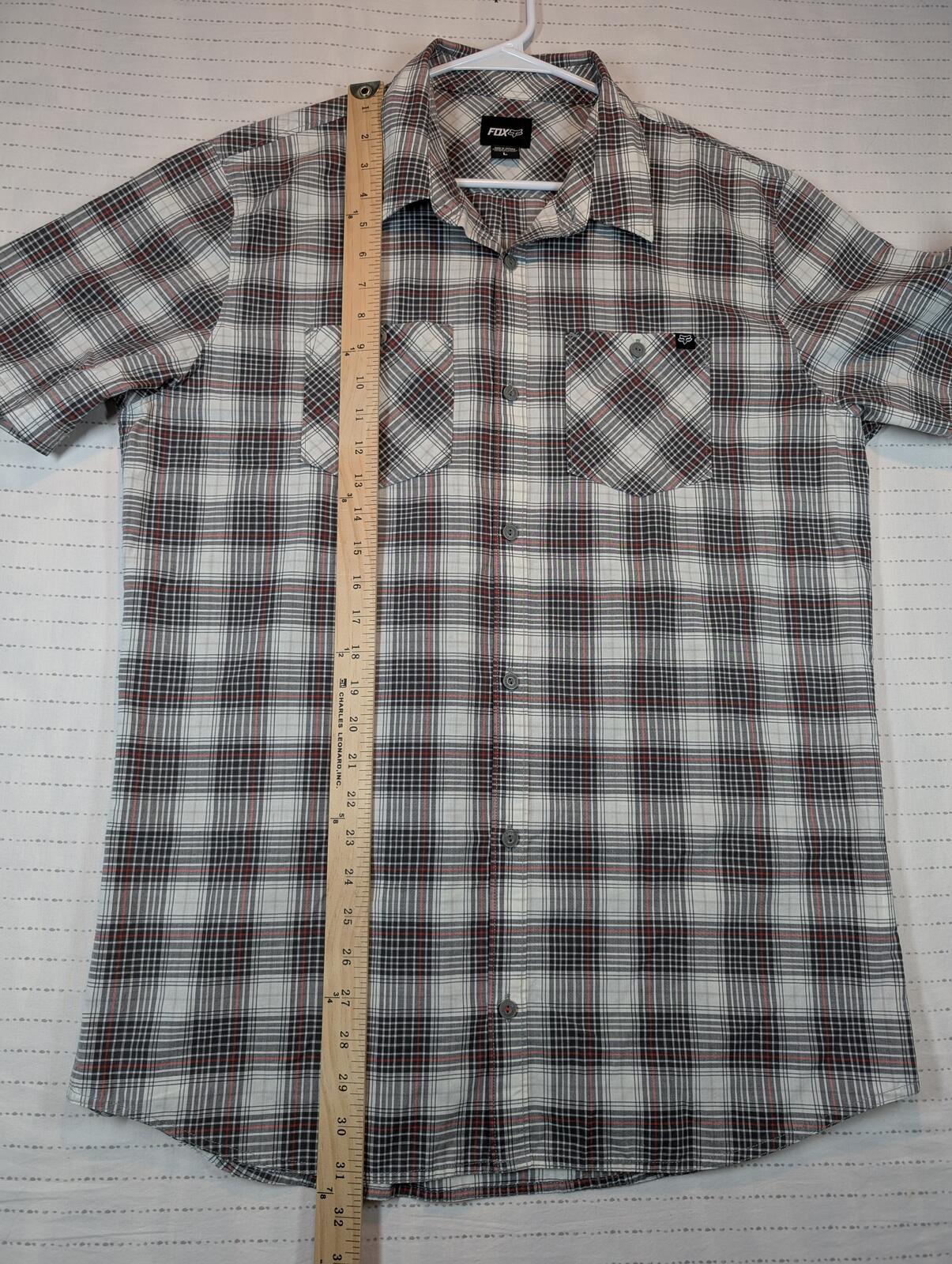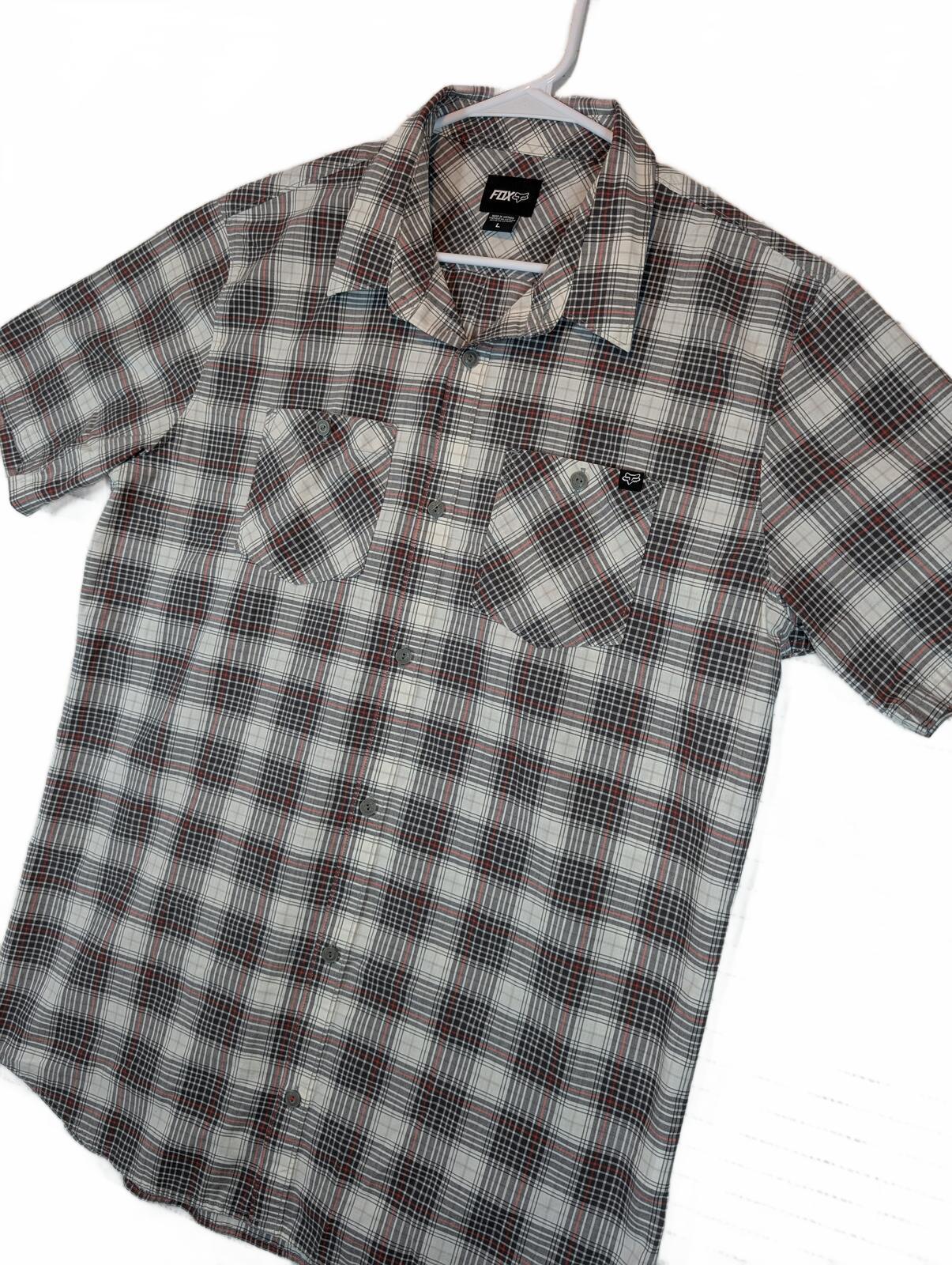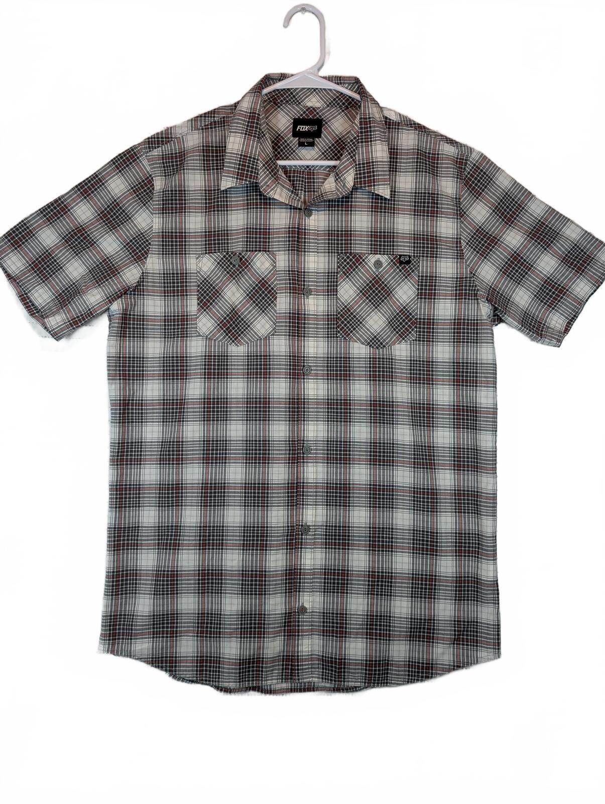 This is a Fox short sleeve button-up shirt with a plaid pattern and dual chest pockets. A good casual skate shirt with a collared fit and clean everyday look.