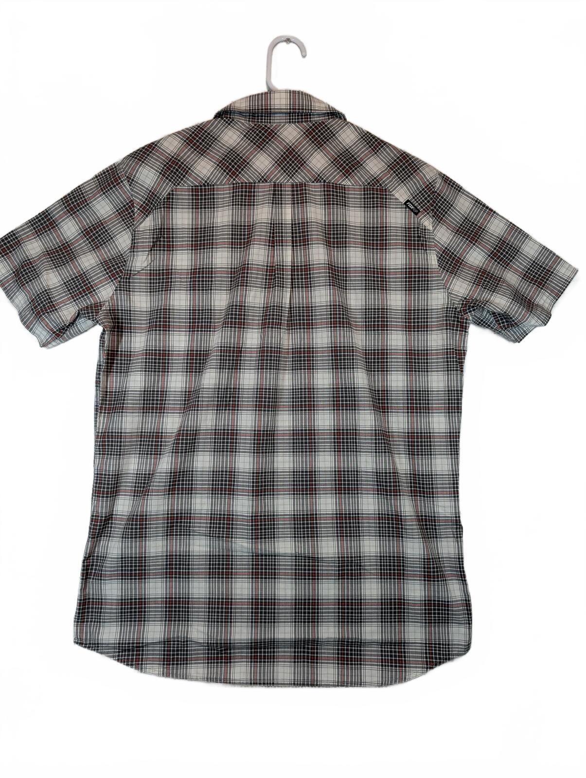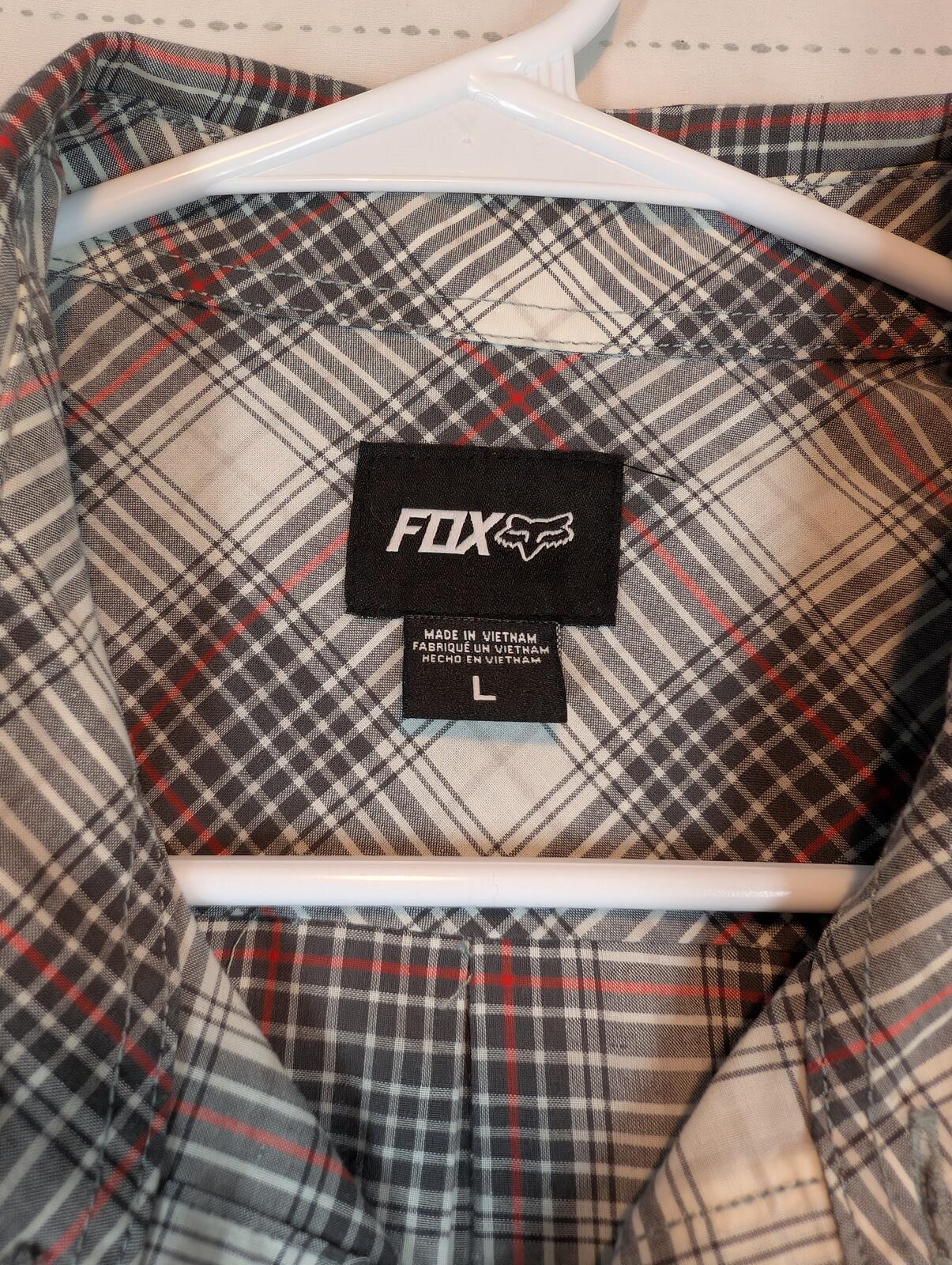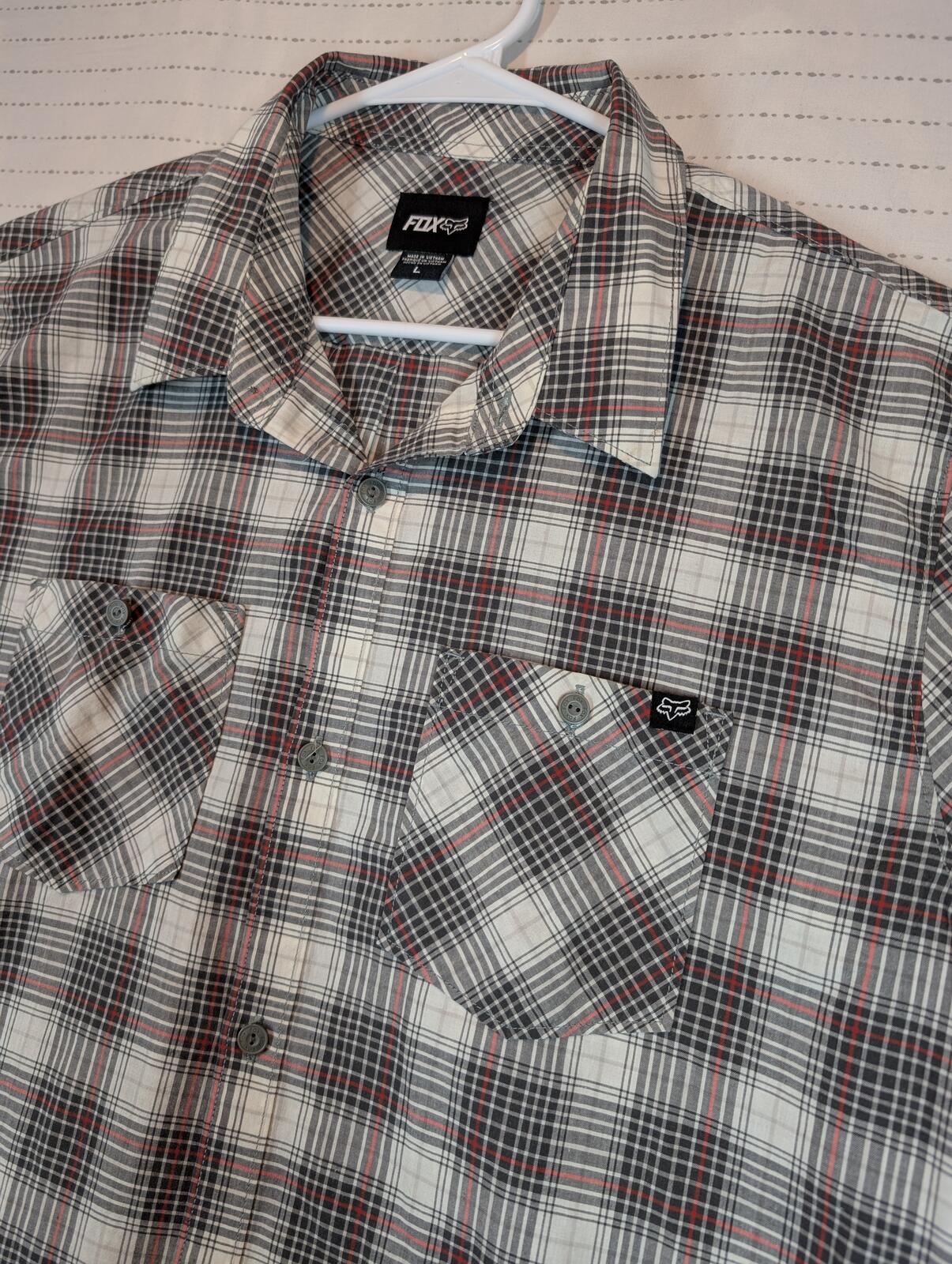 This is a Fox short sleeve button-up shirt with a plaid pattern and dual chest pockets. A good casual skate shirt with a collared fit and clean everyday look.