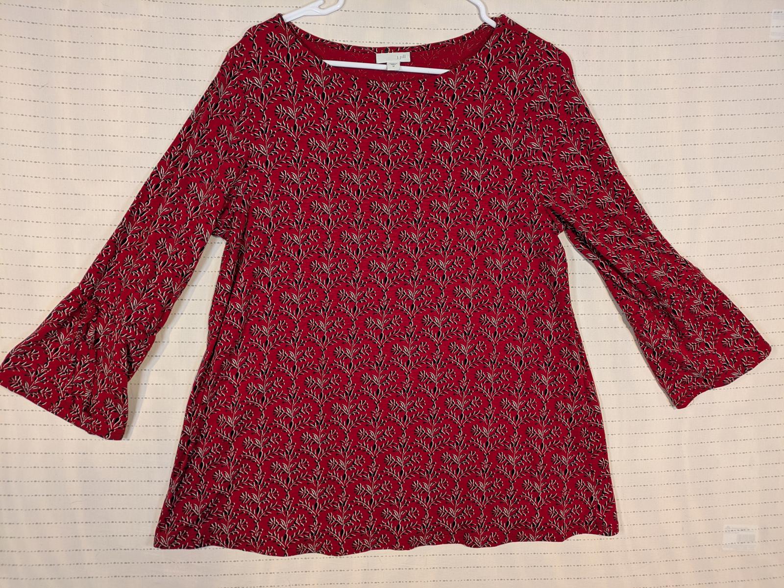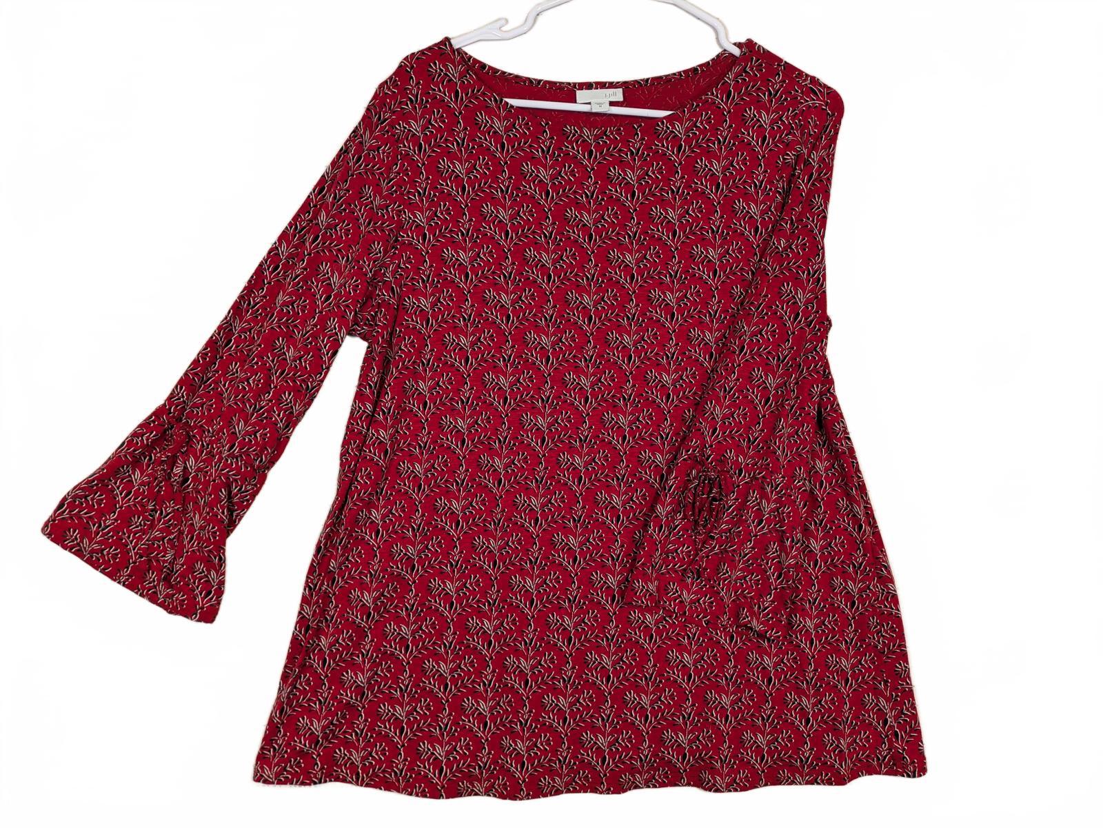 J.Jill Printed Floral Bell Sleeve Knit Top Womens Medium