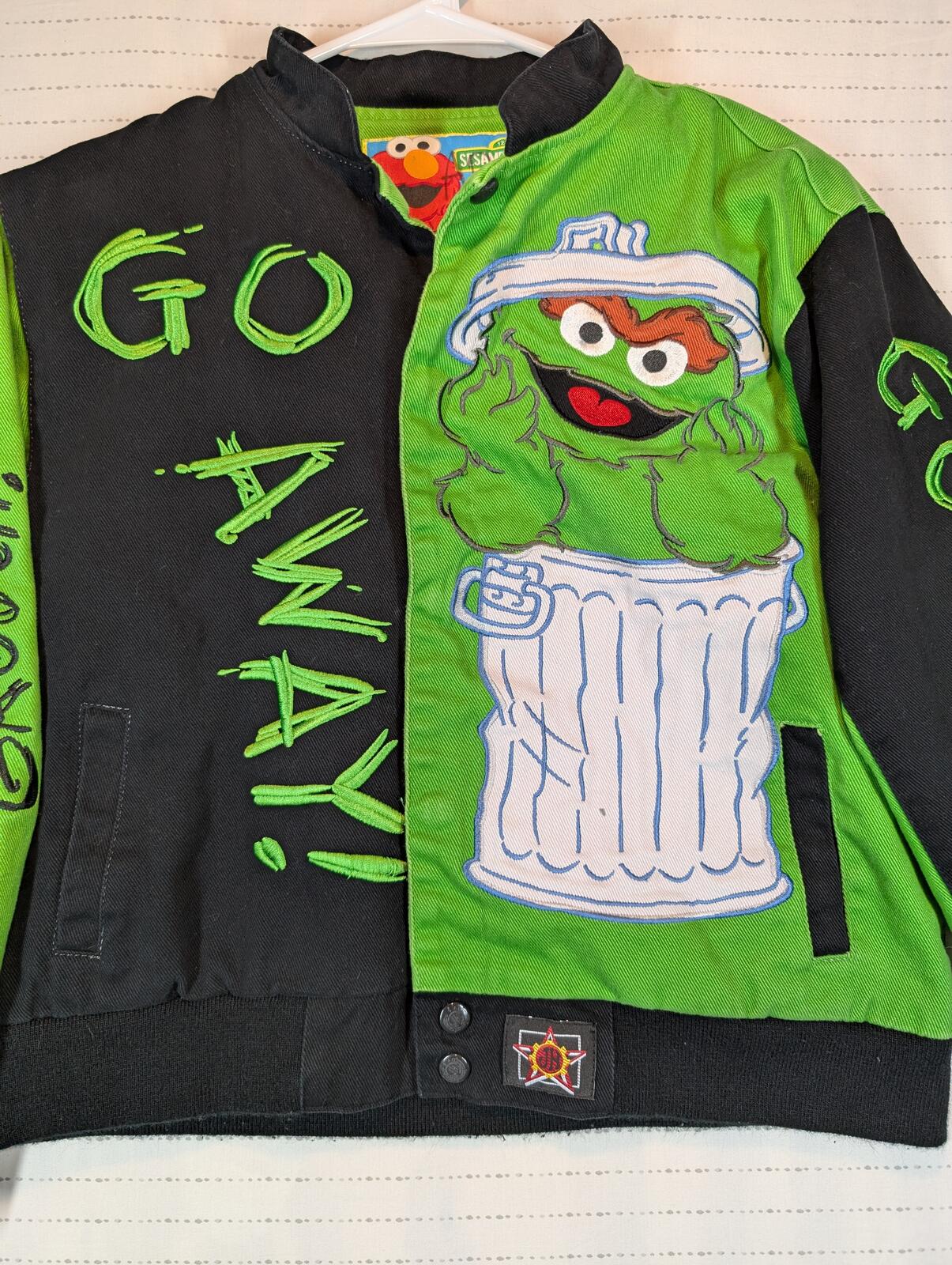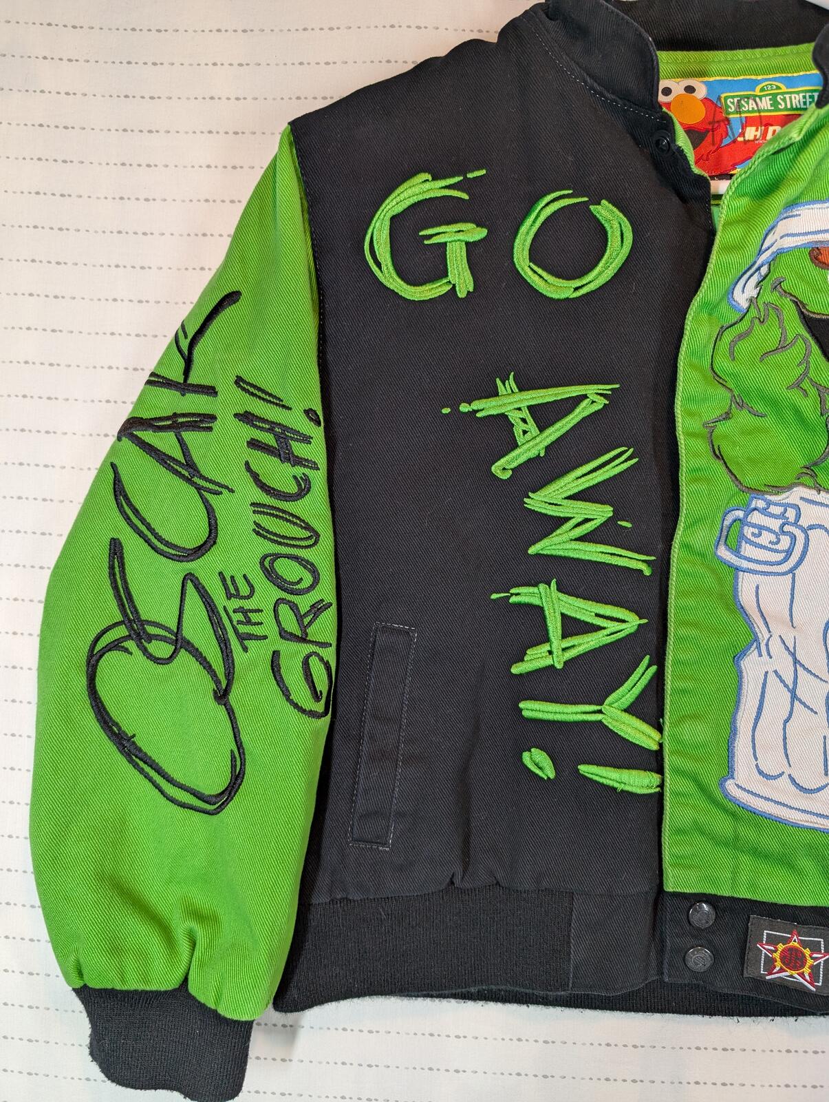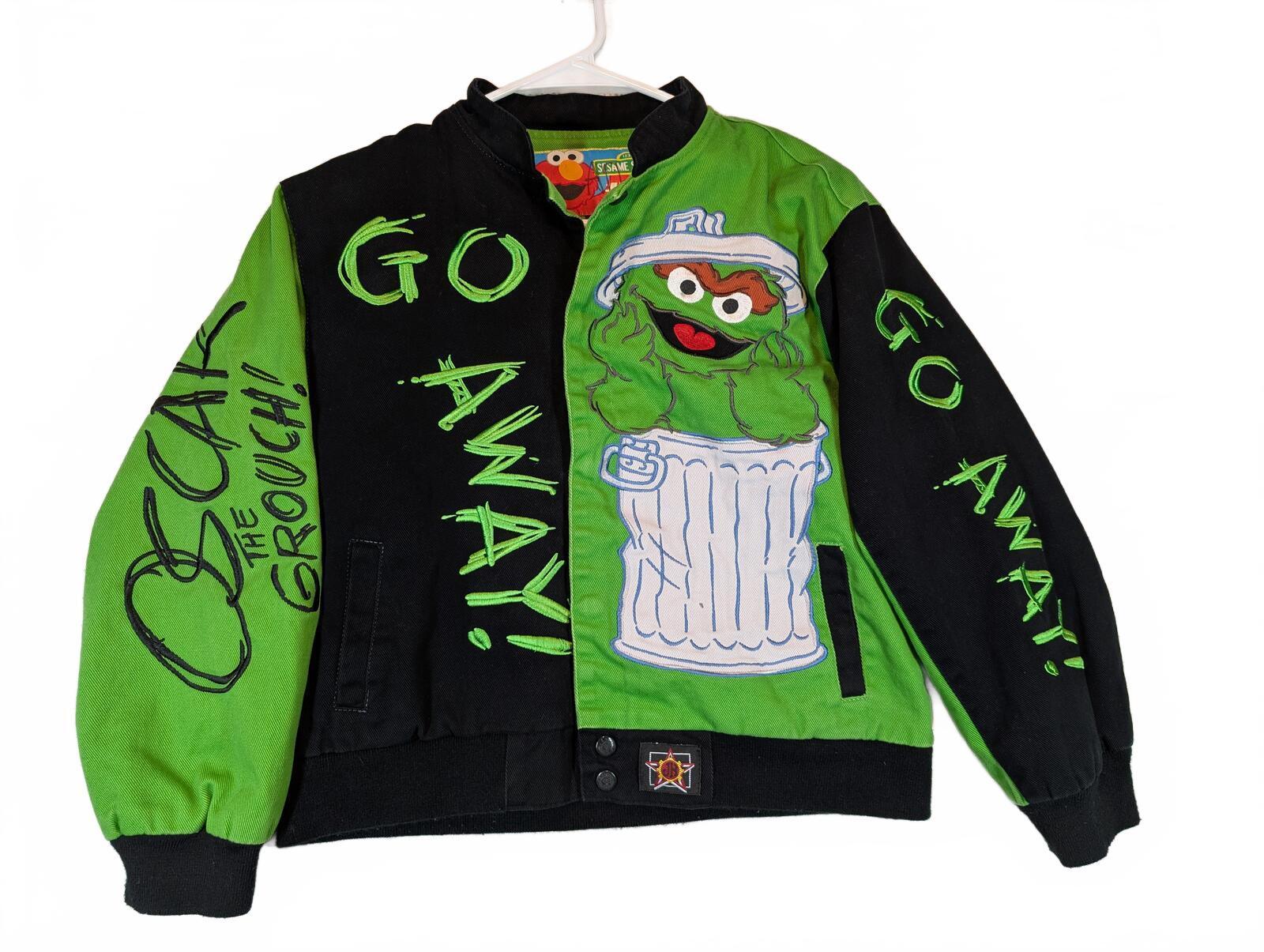 JH Design Sesame Street Oscar The Grouch Varsity Green Jacket Kids Large 9-10