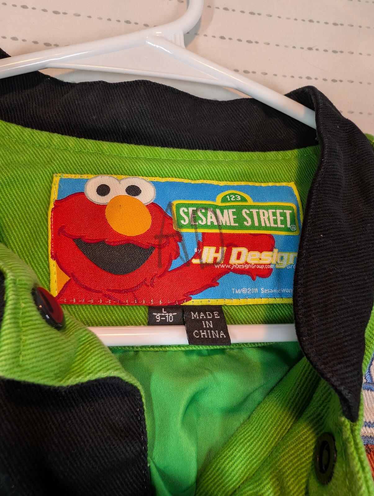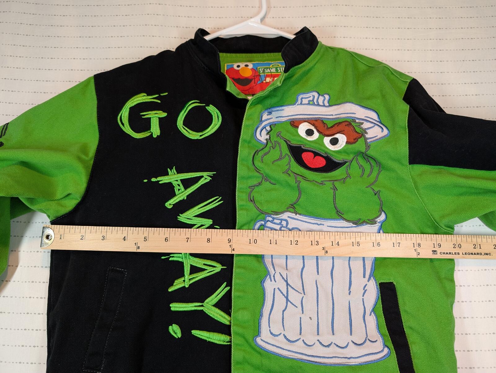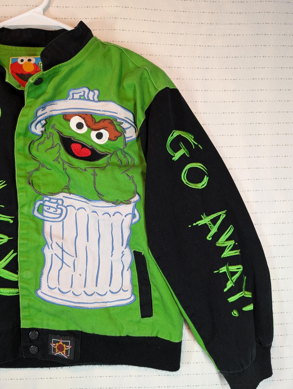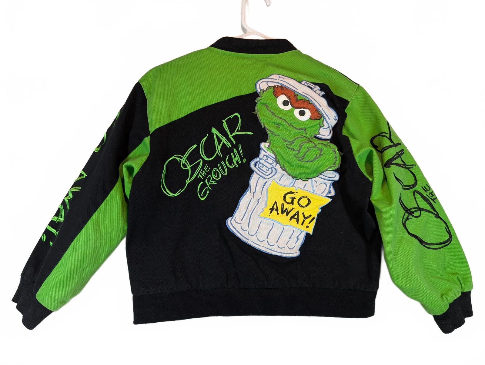 JH Design Sesame Street Oscar The Grouch Varsity Green Jacket Kids Large 9-10
