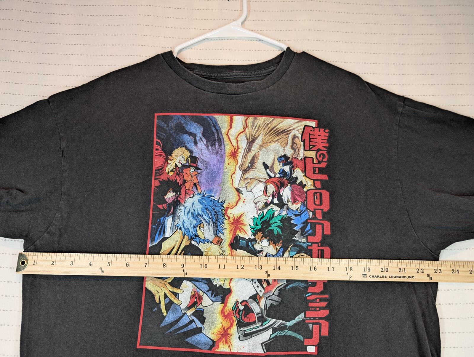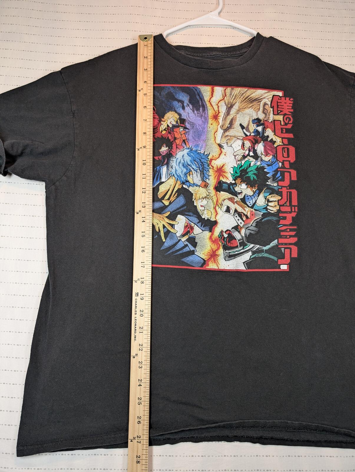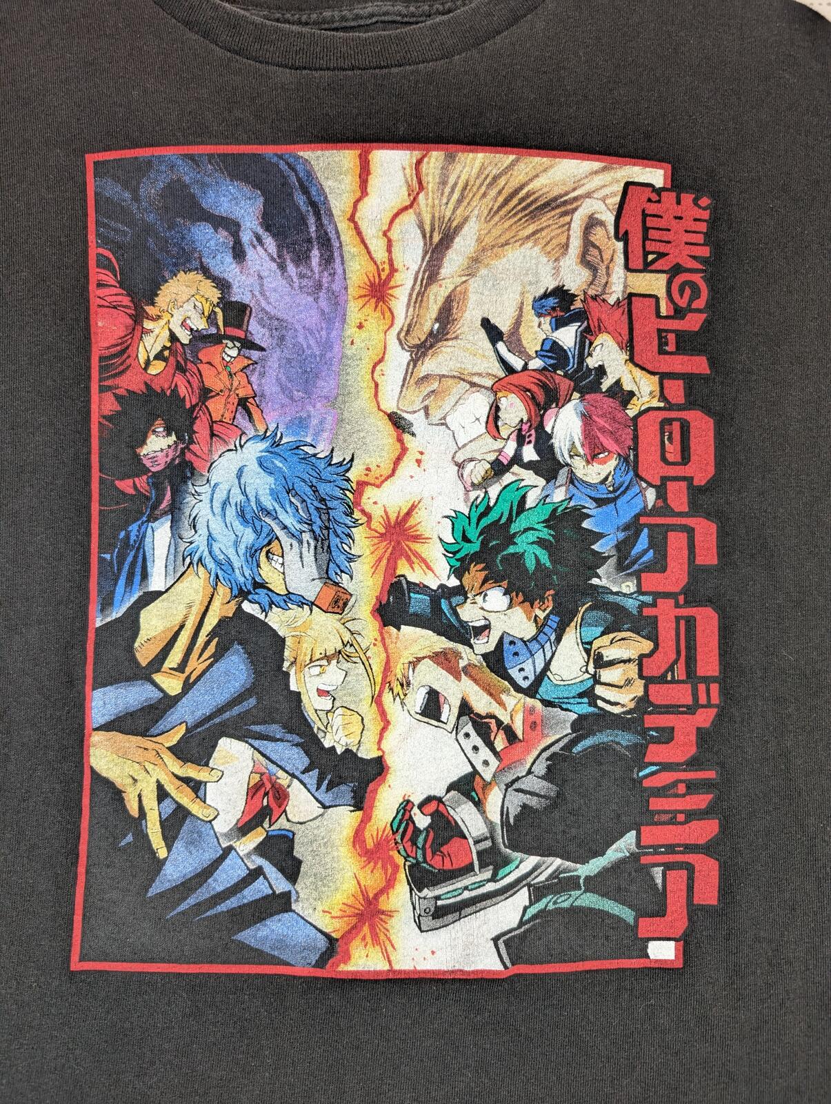 This shirt is a black graphic tee featuring My Hero Academia battle artwork with anime and manga styling across the front. A solid casual fan piece for streetwear or everyday wear. We carefully pack & ship same-day or next. The items are stored in a pet-free, smoke-free, temperature controlled environment. Please see all photos for item’s condition and measurements with the yardstick.