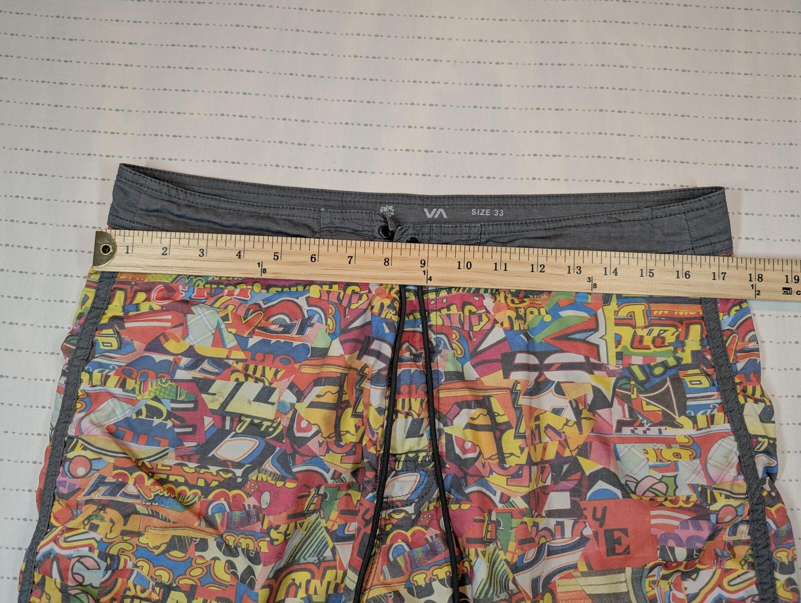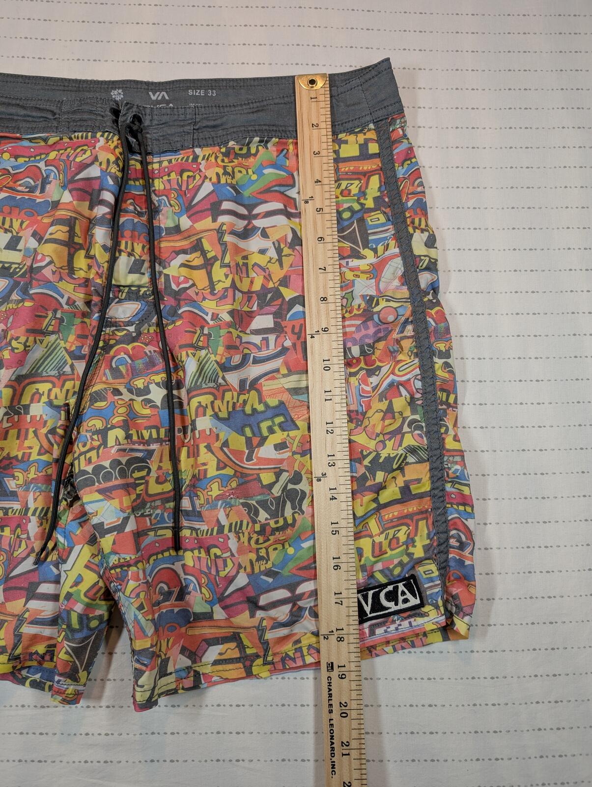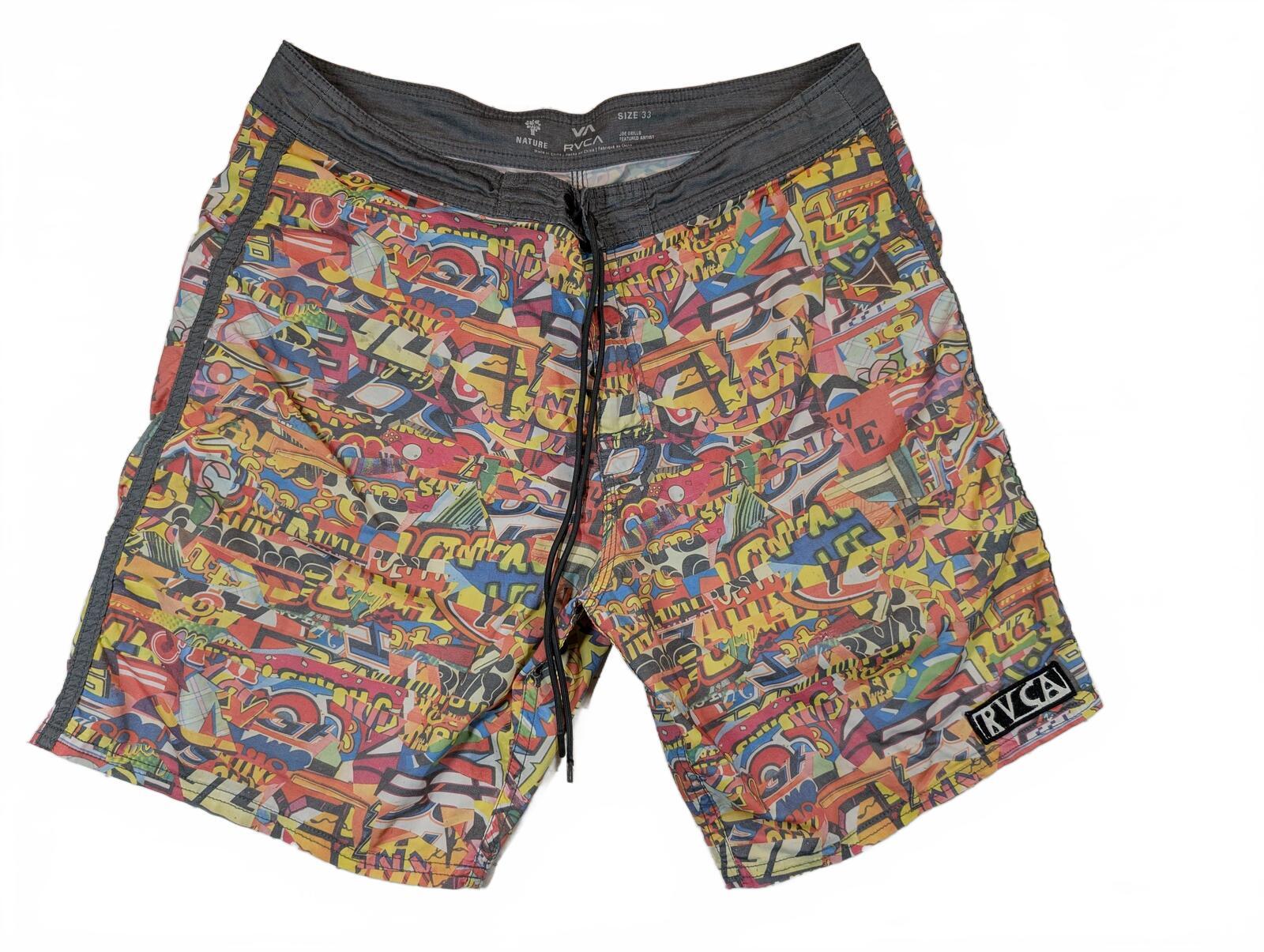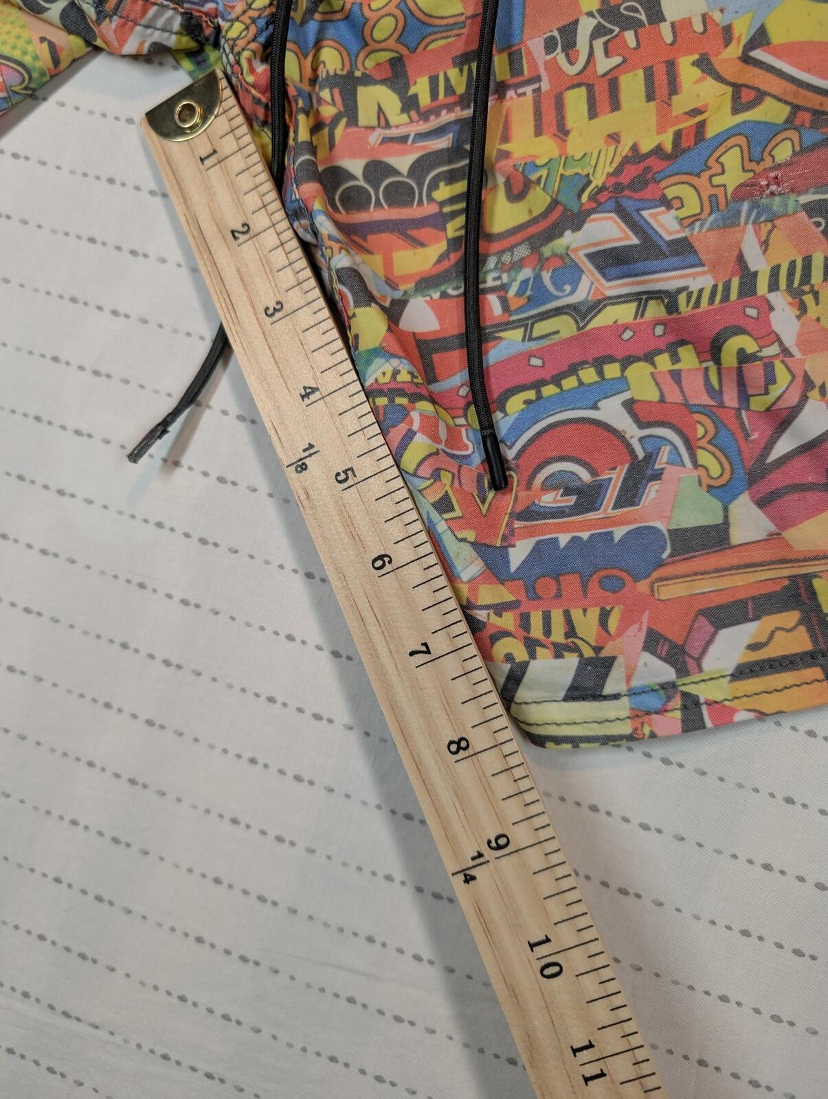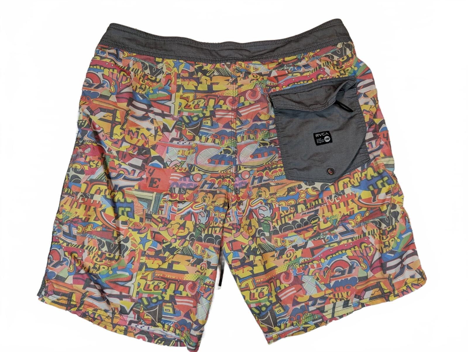These board shorts feature a colorful graphic print and Joe Grillo Nature collaboration details, built for surf, swim, and beach wear. Drawstring waist and back pocket finish the look. We carefully pack & ship same-day or next. The items are stored in a pet-free, smoke-free, temperature controlled environment. Please see all photos for item’s condition and measurements with the yardstick.