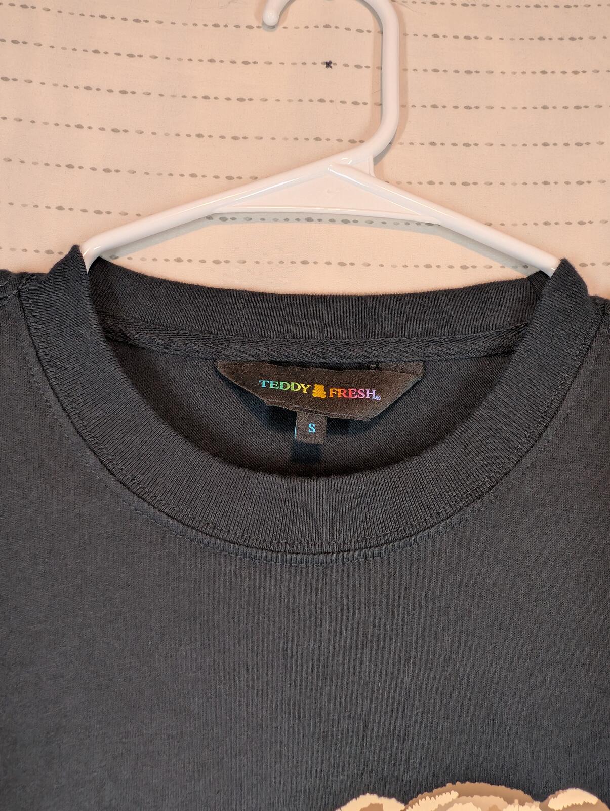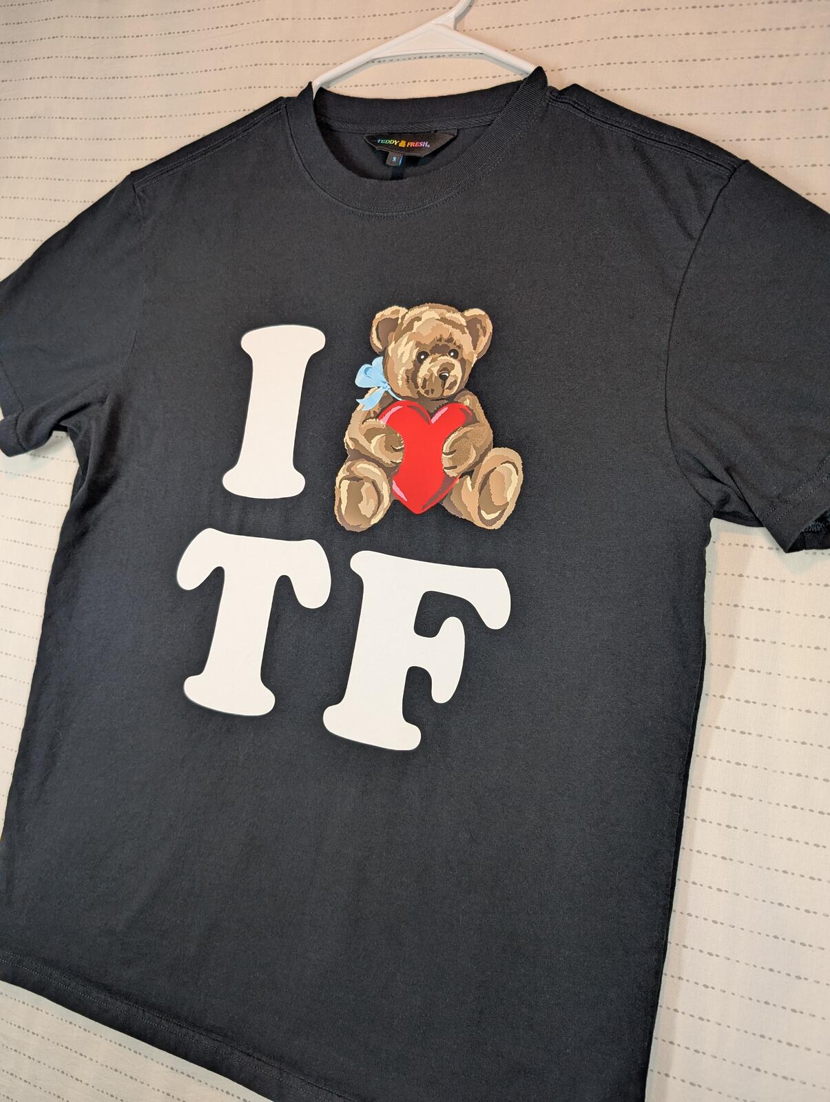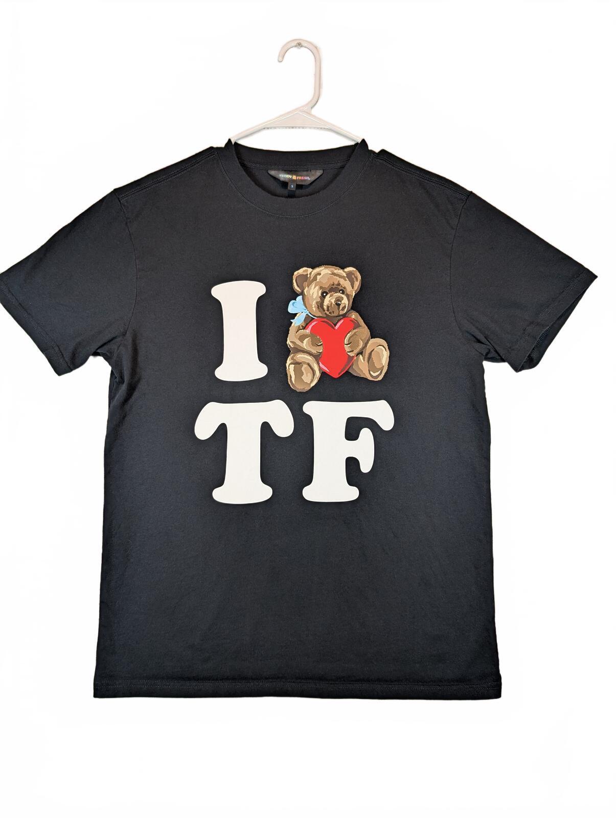 This is a Teddy Fresh graphic T-shirt featuring a teddy bear heart print with bold streetwear lettering on the front. Soft casual tee with a clean look and standout logo graphic.