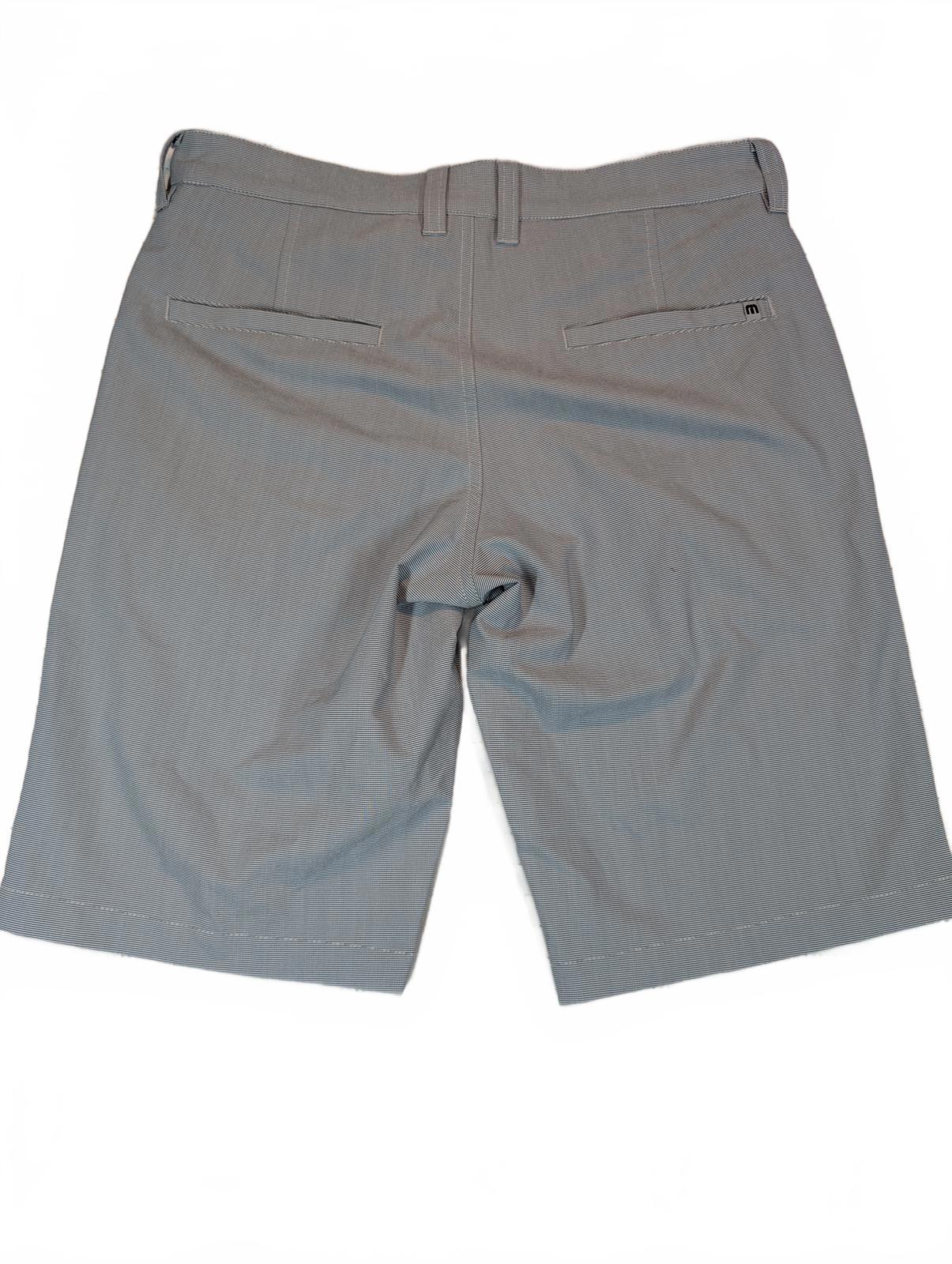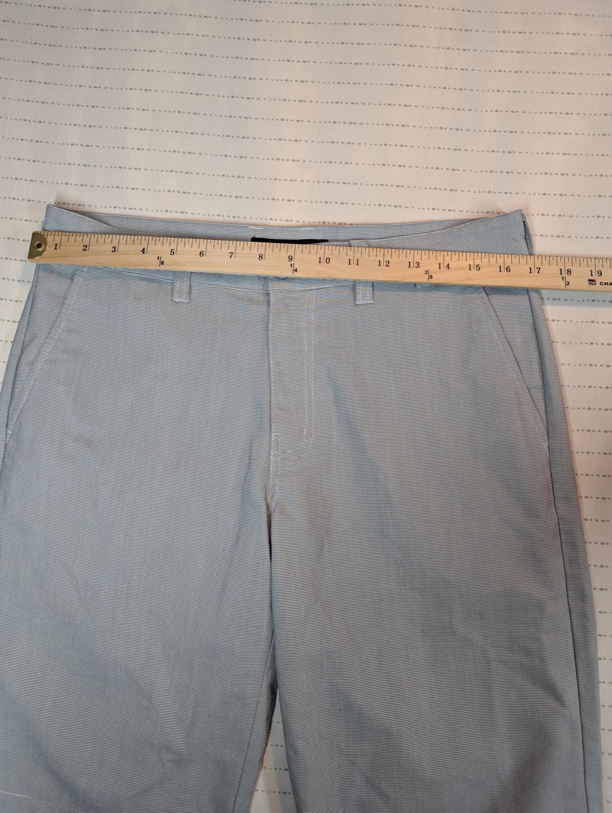 These TravisMathew men’s golf shorts feature a flat front design with a clean, modern look suitable for golf, casual wear, or everyday use. They are made with a stretch performance fabric blend for comfort and mobility and include front and back pockets with a button closure waistband. The shorts show light wrinkling consistent with normal wear, with no holes or major flaws observed. We carefully pack & ship same-day or next. The items are stored in a pet-free, smoke-free, temperature controlled environment. Please see all photos for item’s condition and measurements with the yardstick.