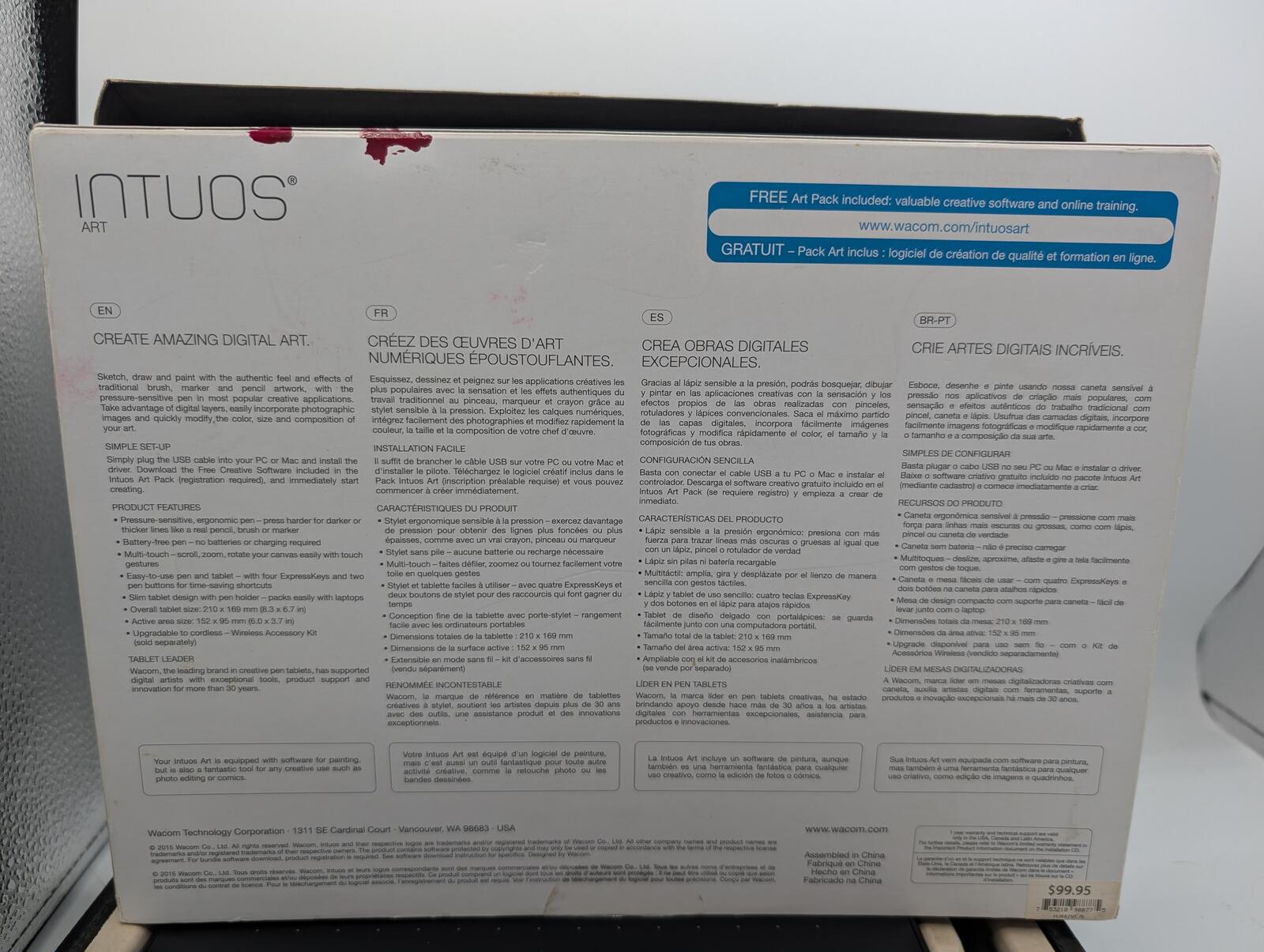 • Included: Tablet, stylus, USB cable, booklet, box, CD